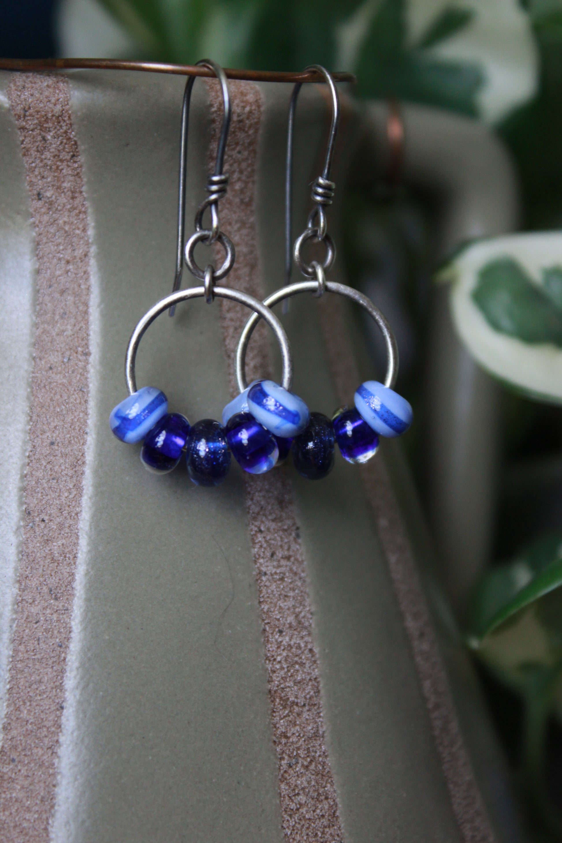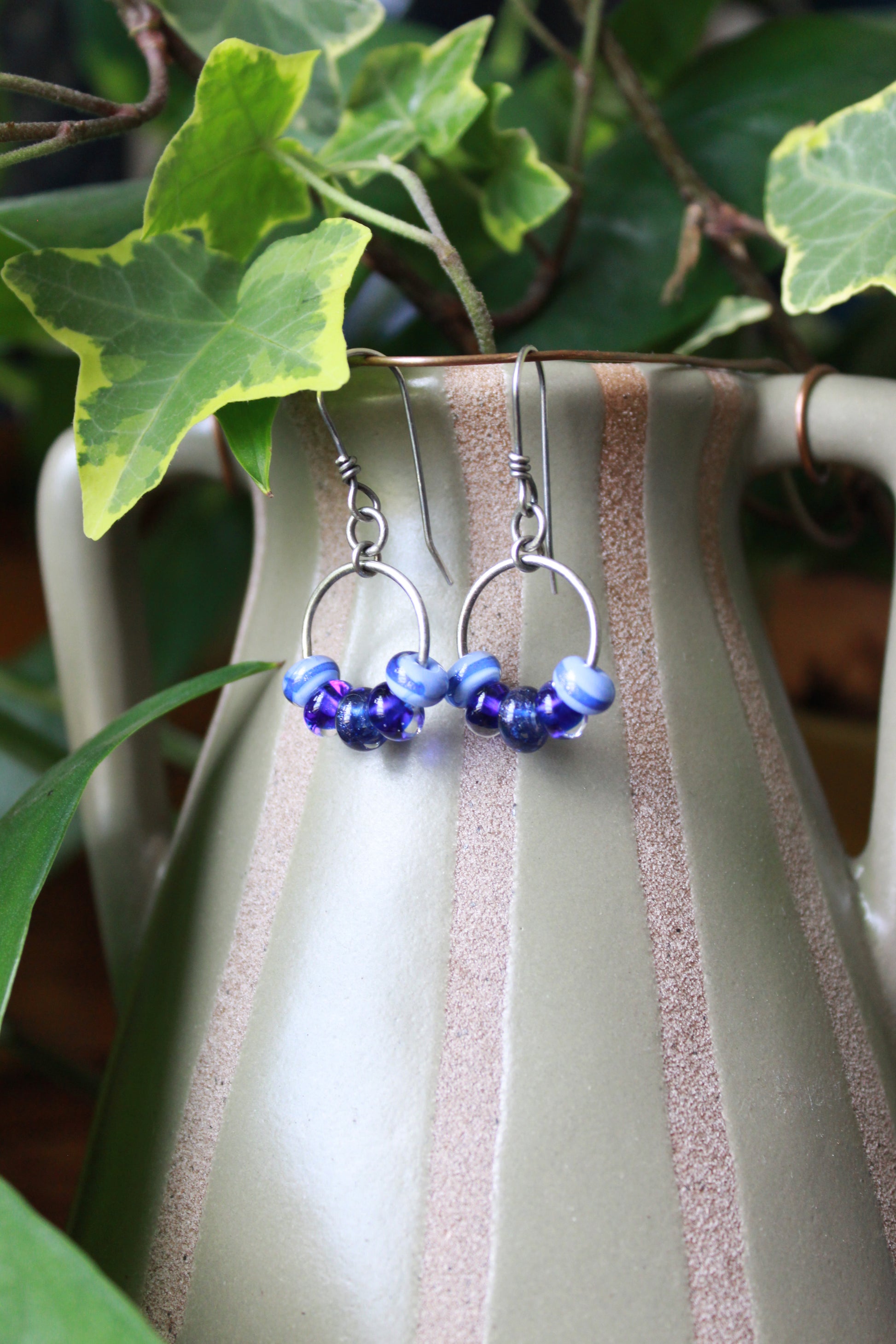 Handmade Moretti glass beads and .925 sterling silver findings.