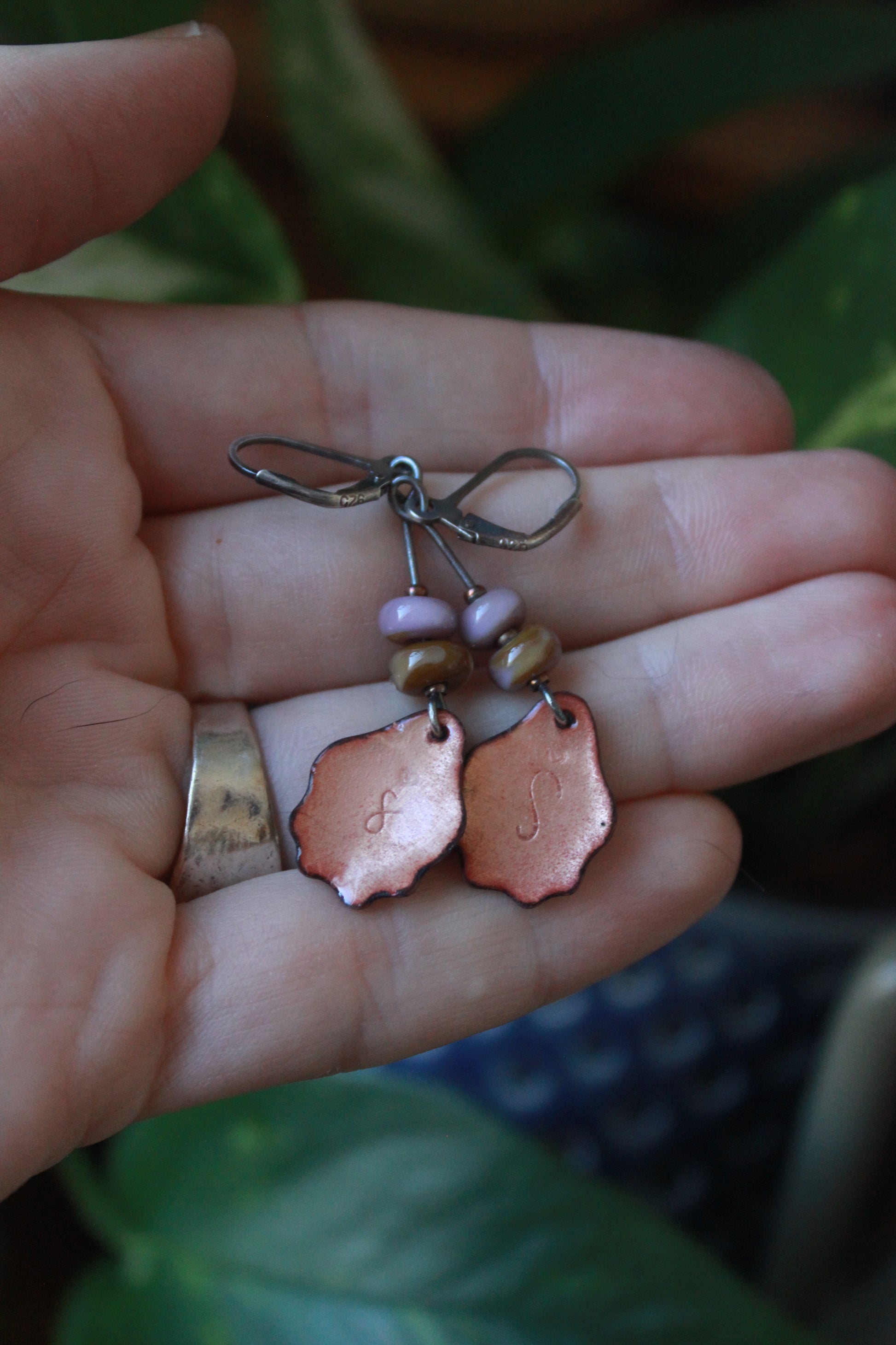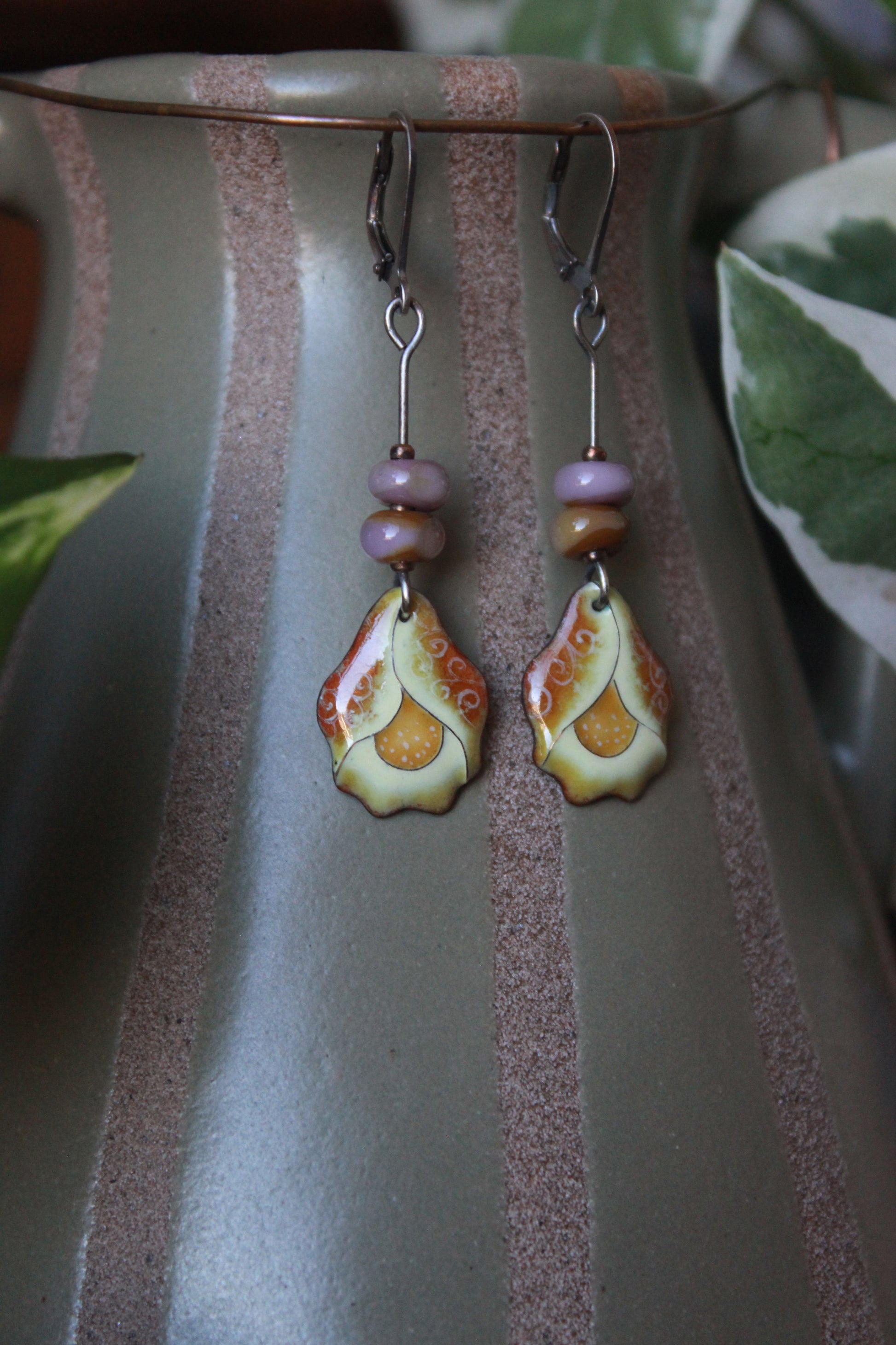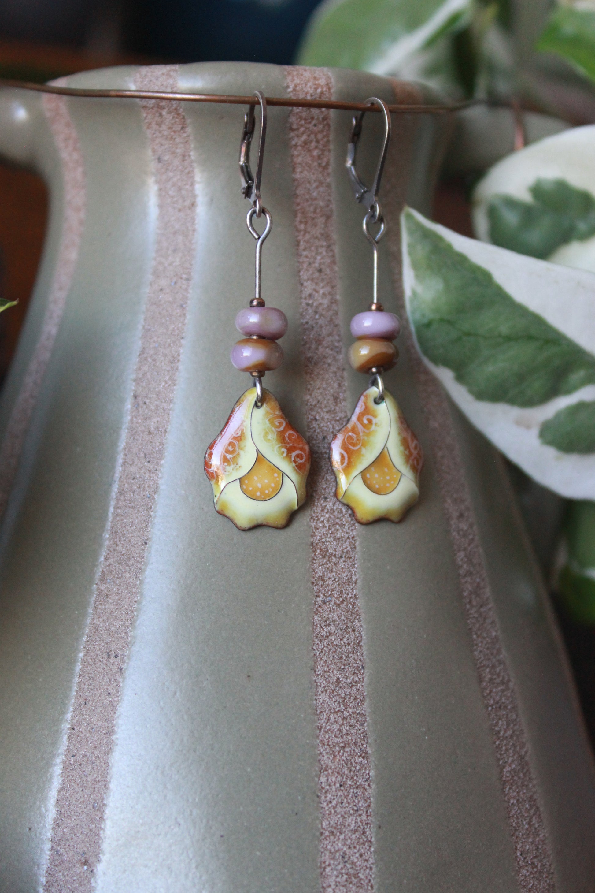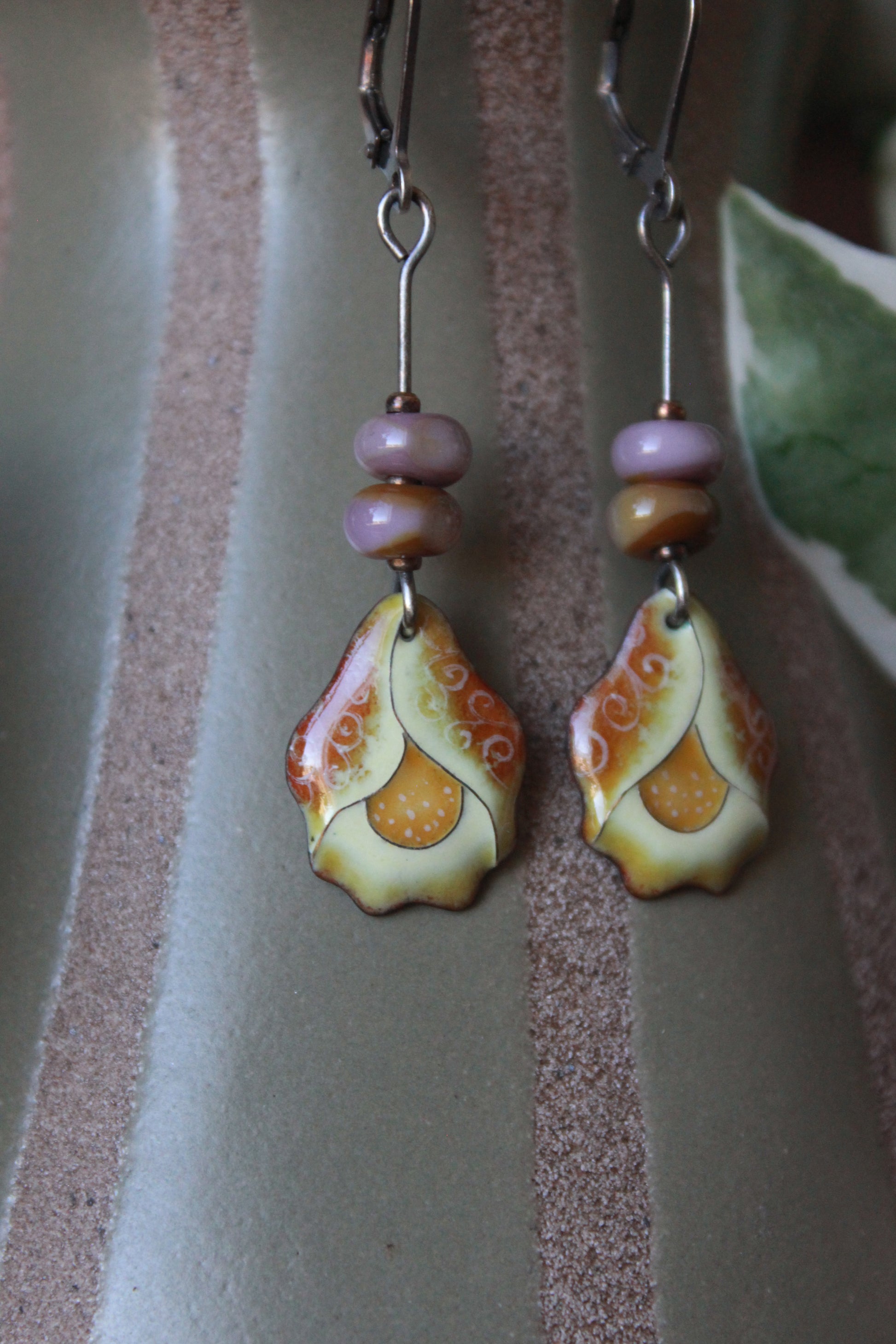 Cloisonné on copper,handmade lampwork glass beads and sterling silver findings