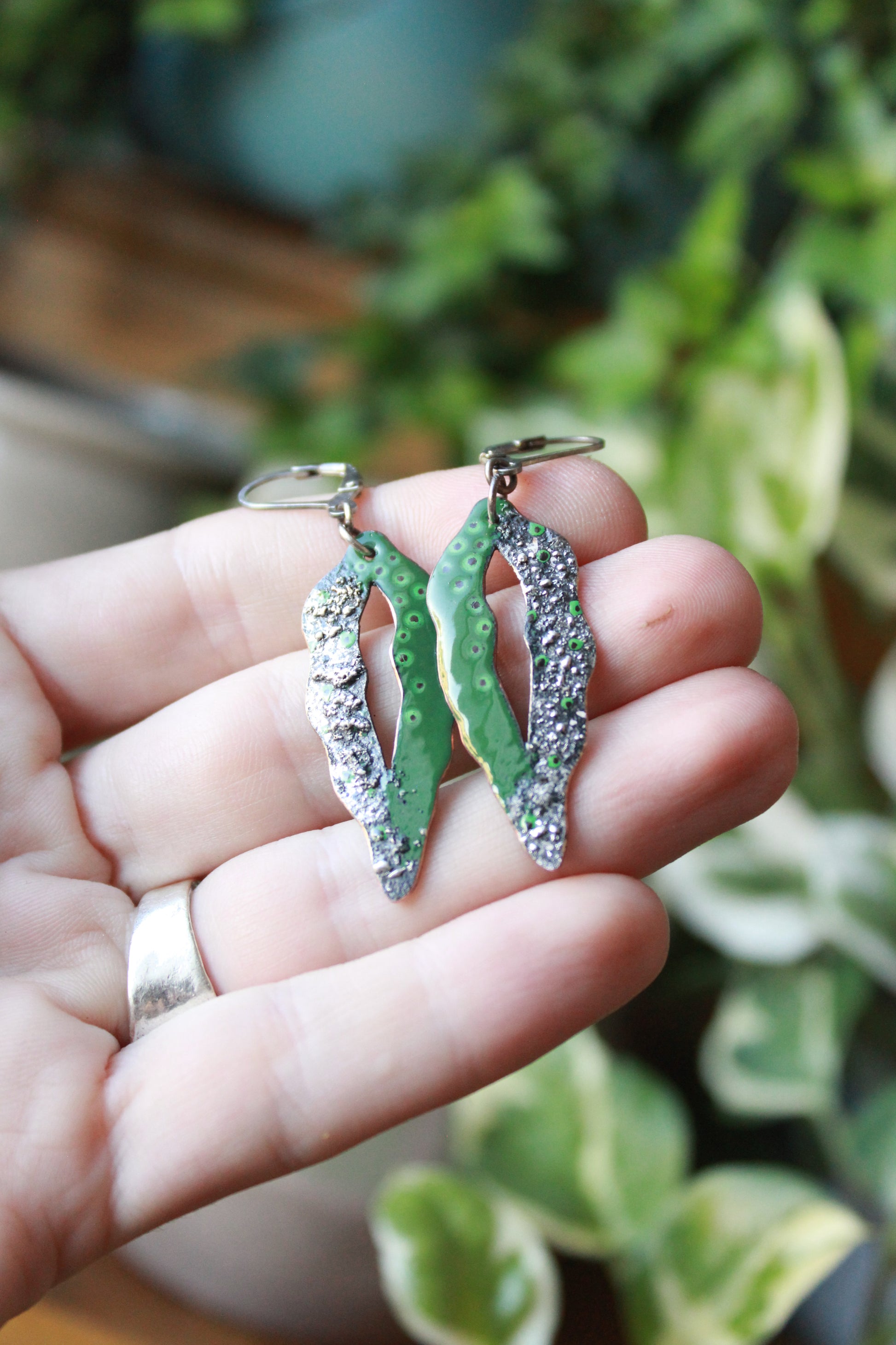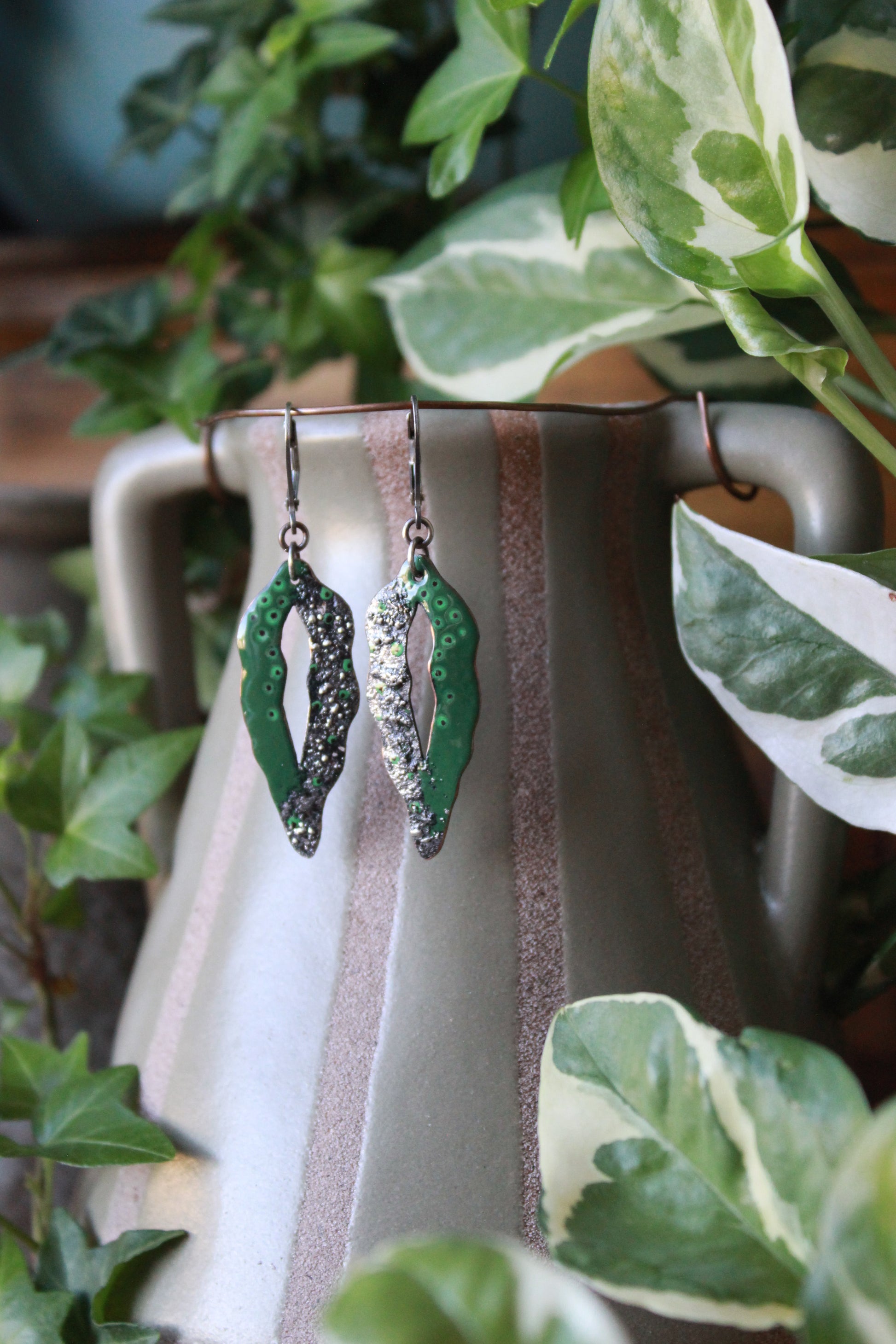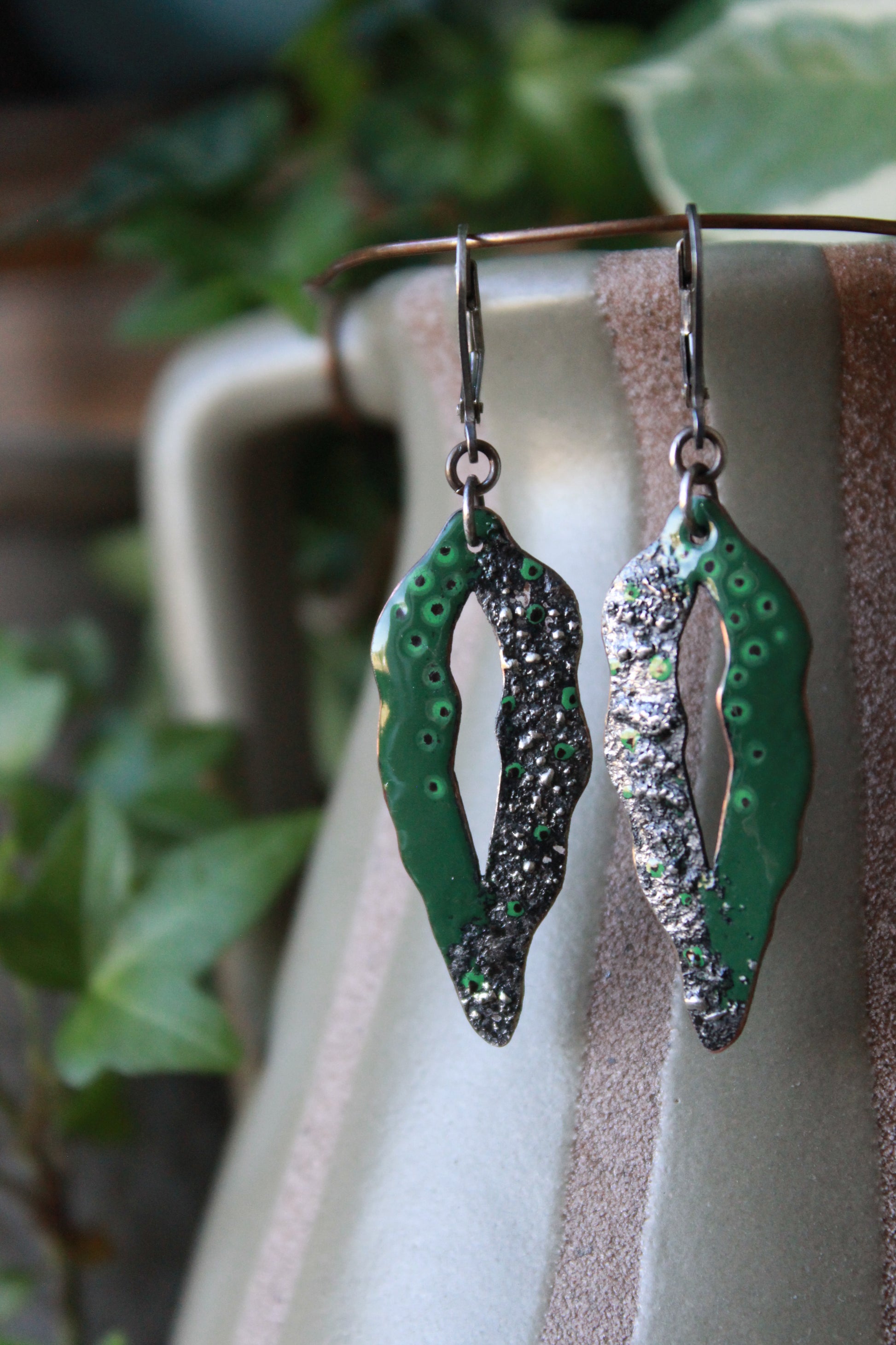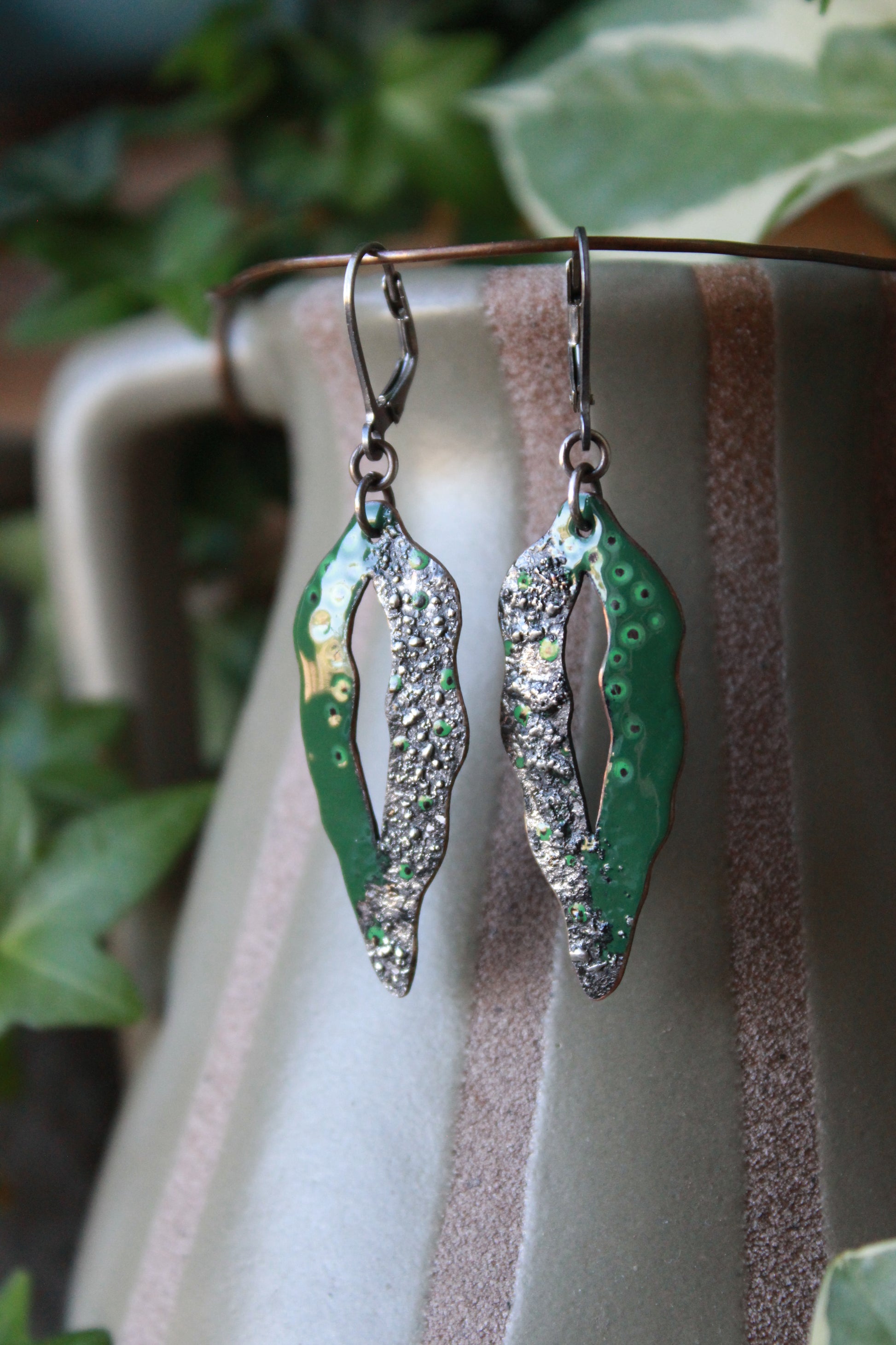 Nature provides the inspiration and I went a little rogue. I really enjoyed sawing each little detail by hand. These feature a layer of fused sterling silver to create the earthy textures - no 2 pairs will ever be the same.