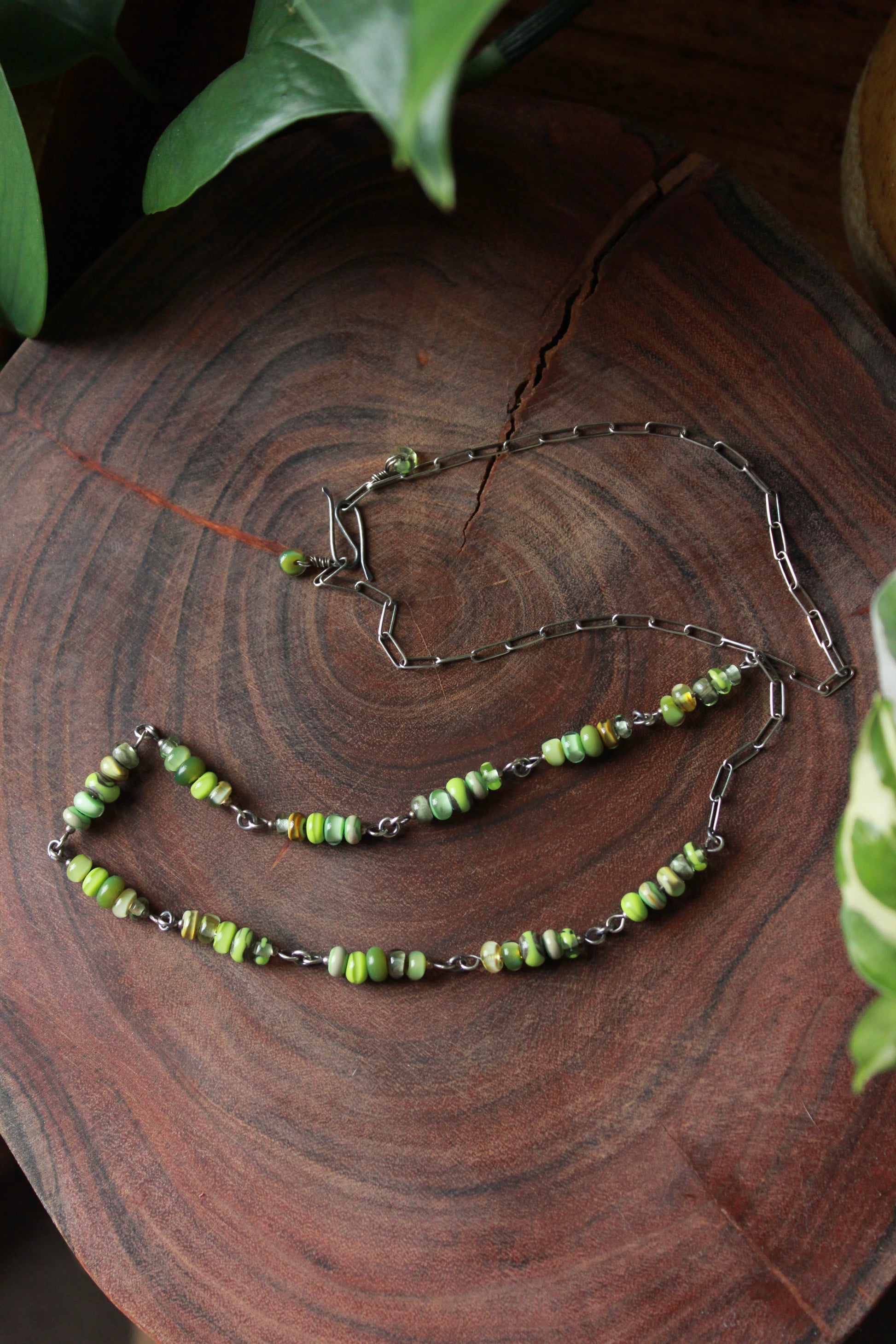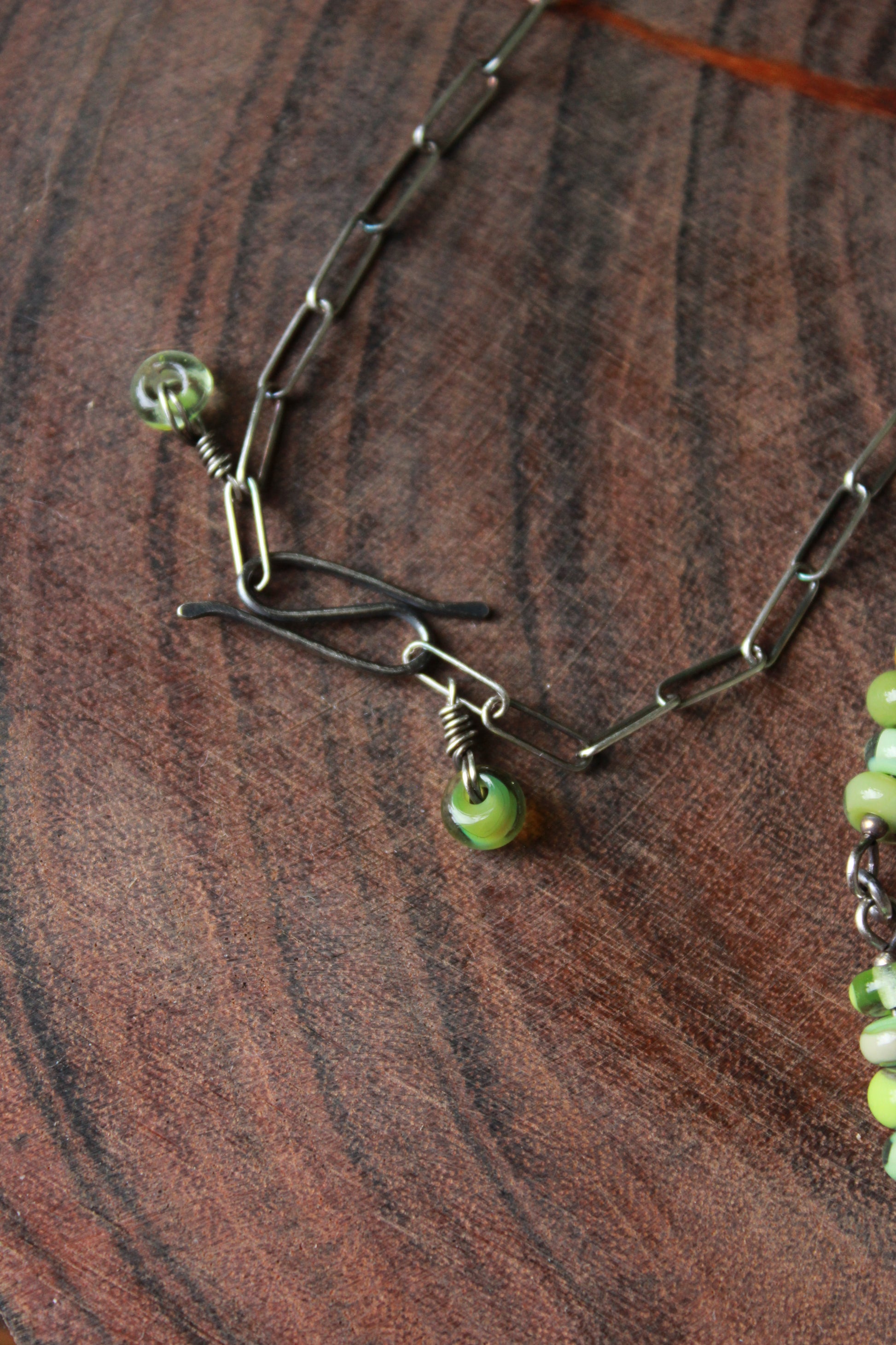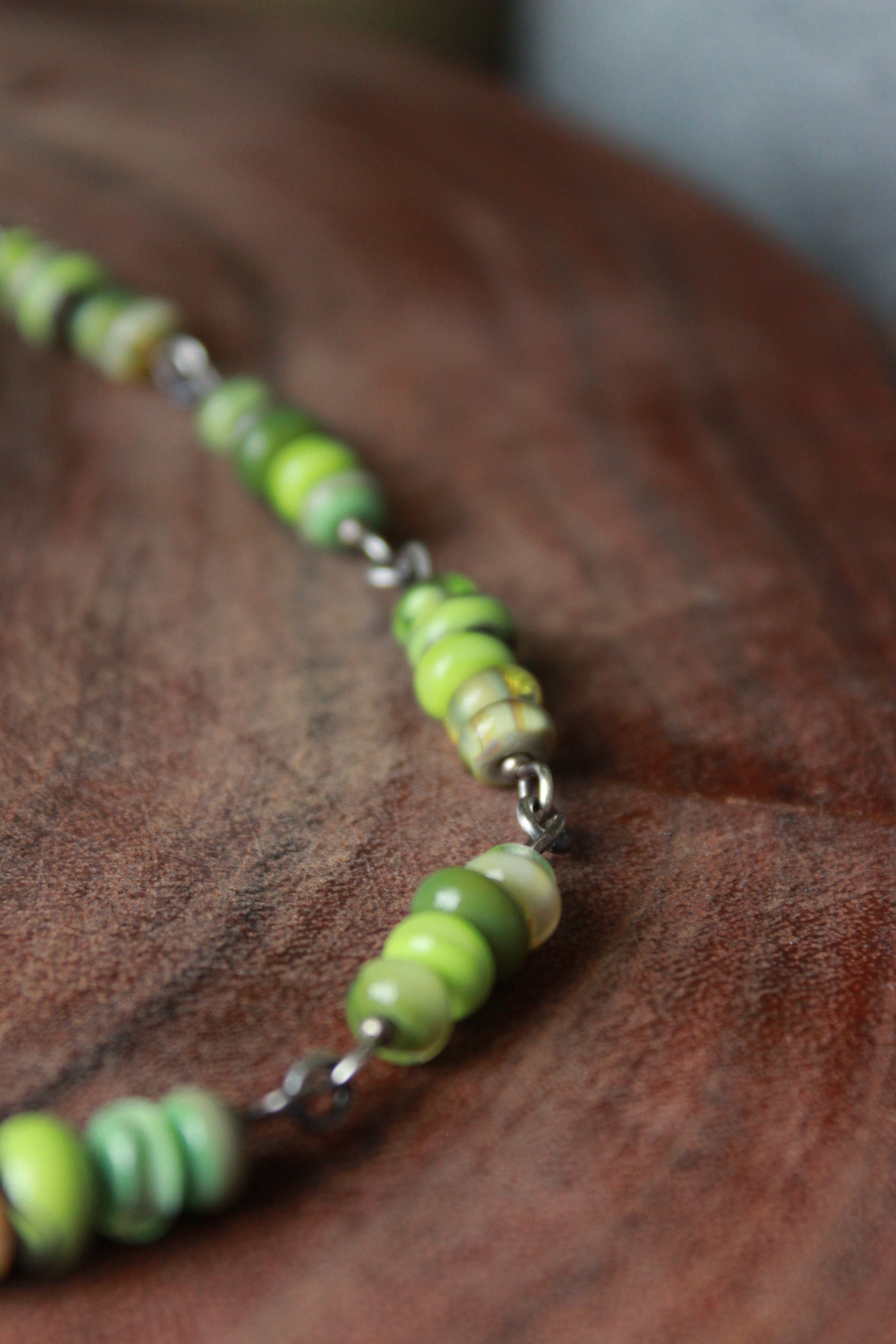 Handmade Moretti glass beads, kiln hardened for durability. All findings are Sterling silver and the chain is finished with a handmade Sterling clasp.
