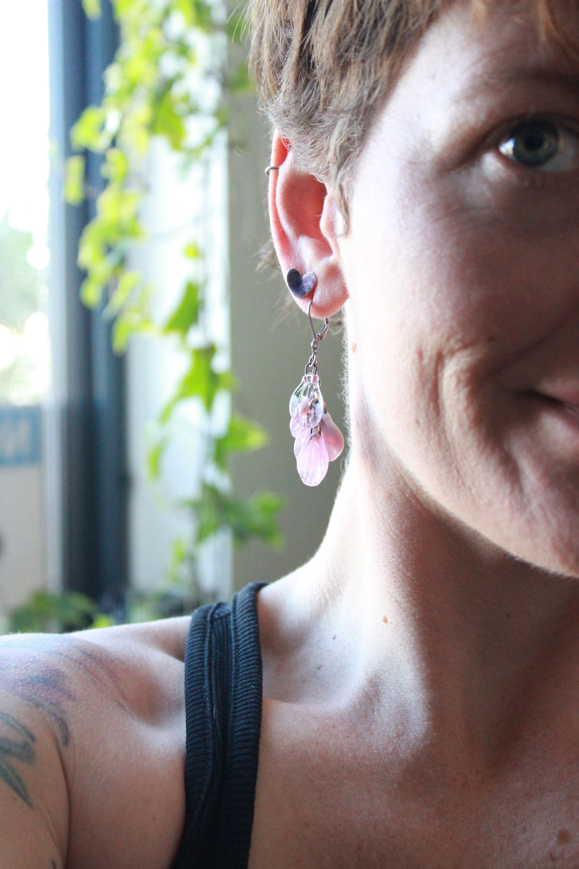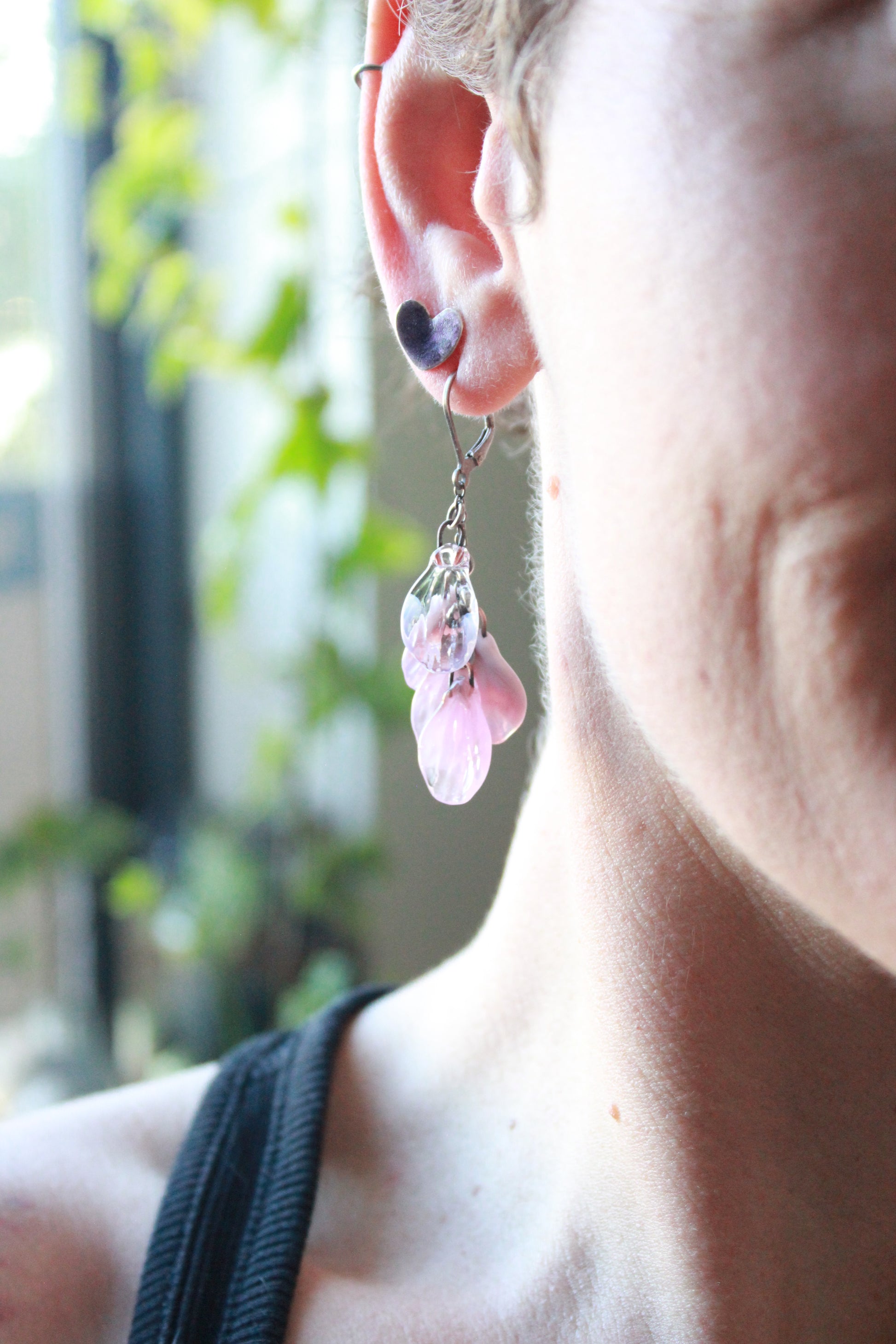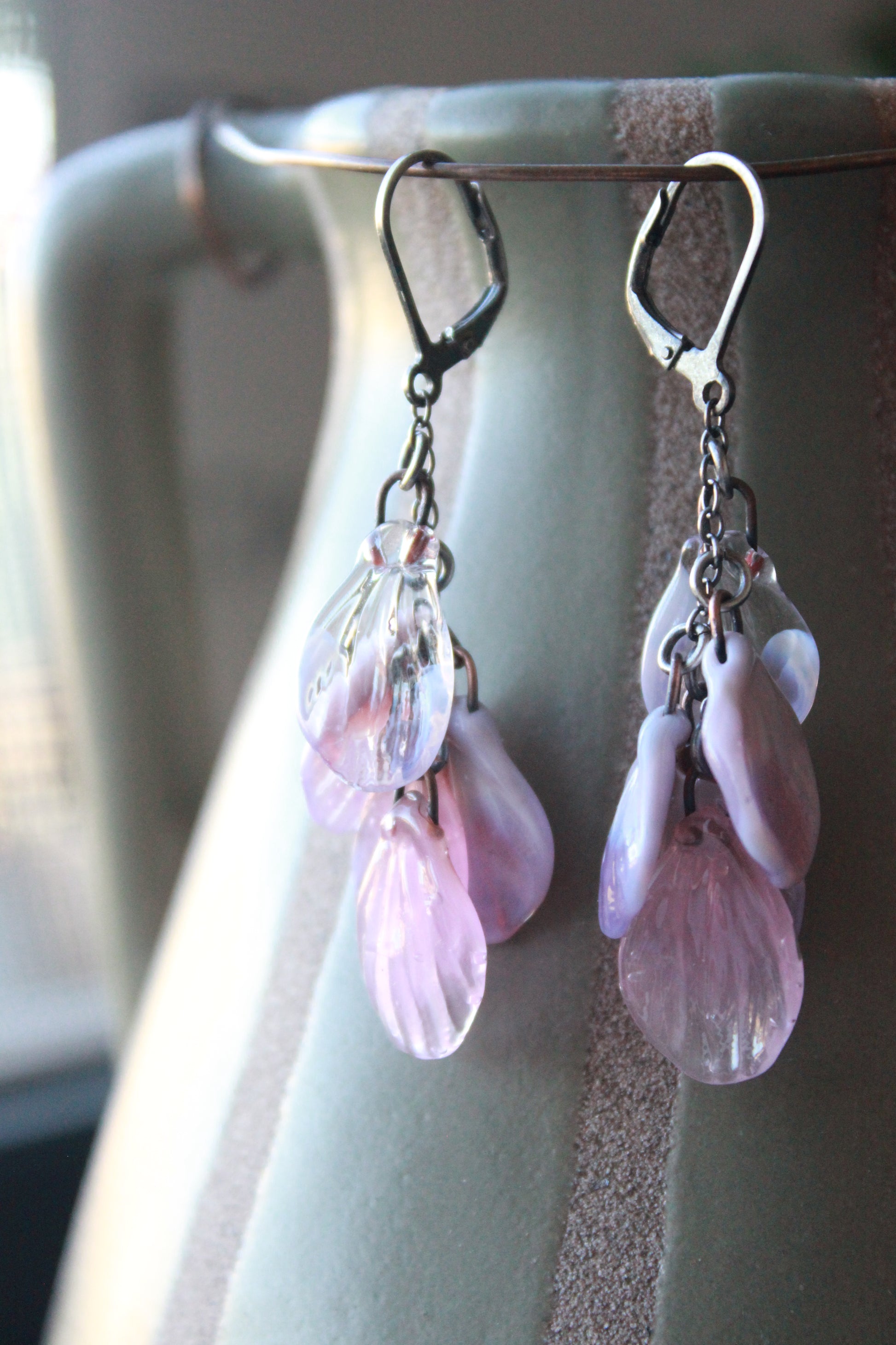 Handmade Moretti glass beads (embedded with copper) and .925 sterling silver findings and continental clip.